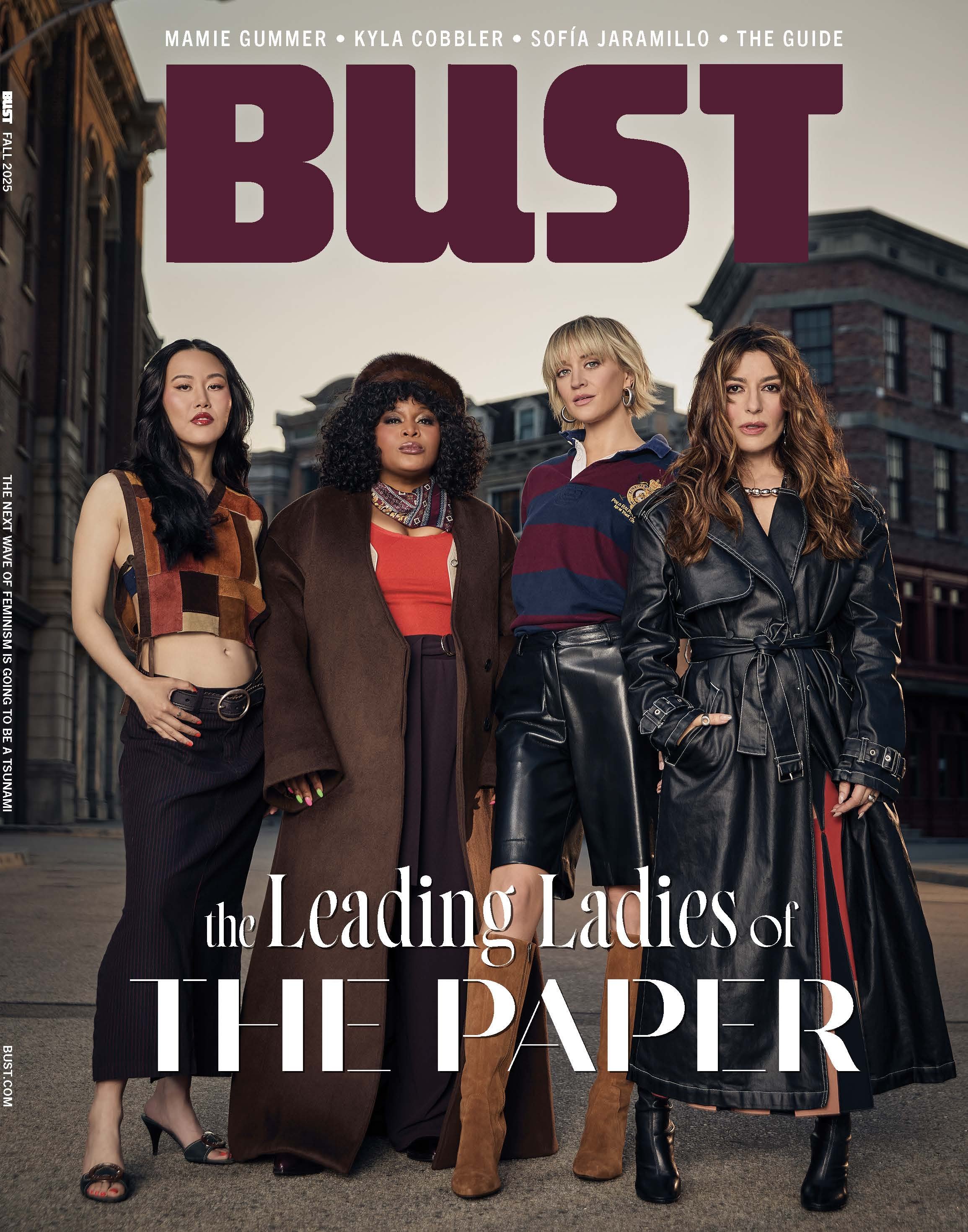 A dress made from manga pages, holding a 'Demon Slayer' themed fan, with a headpiece featuring black butterflies.